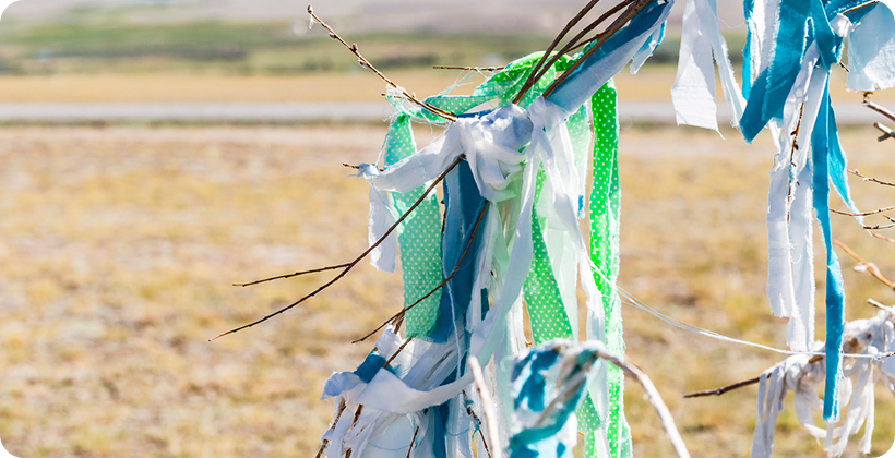 Каждый, кто приезжает на Алтай, замечает разноцветные ленточки-кыйра на перевалах. Важно помнить, что кыйра буулары, то есть обряд повязывания ленточек, это не просто симпатичный обычай, вроде бросания монетки в фонтан, а религиозный обряд почитания Хозяина Алтая и духов природы. Ведь кыйра — это те самые ленточки, что шаманы повязывают на свои бубны. Следовательно, и сами ленточки, и то, на что их повязывают, и даже то, с какой стороны — все это имеет символическое значение.Например, одному человеку на одном месте можно повязать всего одну священную ленточку в год. Сама ленточка должна быть белого, желтого, голубого или зеленого цвета. Нельзя оторвать край от одежды или шнурок от сумки, ленточка должна быть приготовлена специально для обряда и освящена, окурена дымом можжевельника. Нельзя делать это «просто так», и тем более нельзя делать это со злыми мыслями. Ленточки не повязывают ночью или на убывающую Луну. Во время ритуала нельзя кричать и ссориться. Конечно, нельзя обижать дерево, на которое повязана ленточка: нельзя сдирать кору и ломать его ветки. Впрочем, это касается вообще всех деревьев.