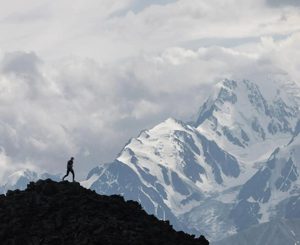 - беговой этап — это настоящий горный трейл с крутыми подъёмами, кульминацией которого становится маршрут к Акташскому ретранслятору и Озеру Горных Духов (высота около 3038 м).