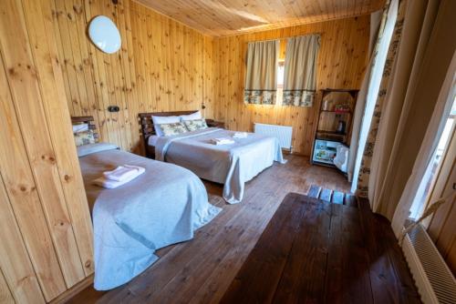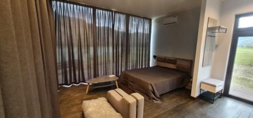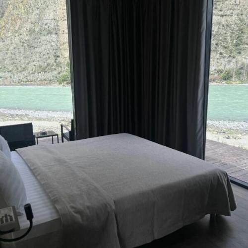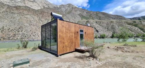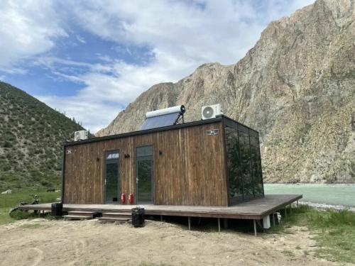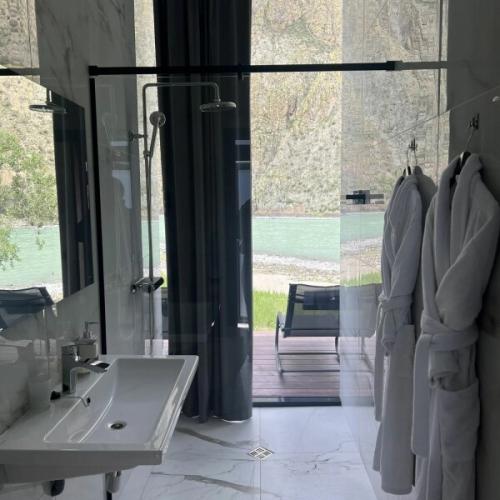 Гостевые дома оборудованы панорамными окнами во всю стену с видом на долину рек. В интерьерах использованы современные материалы, предусмотрены тёплые полы, кондиционеры и ванные комнаты с душем. Пространство домов организовано для комфортного проживания в любое время года и подходит как для кратких заездов, так и для более длительного отдыха.