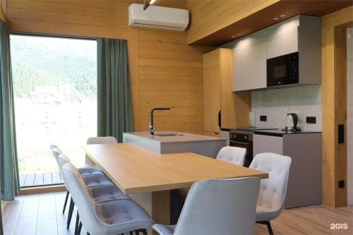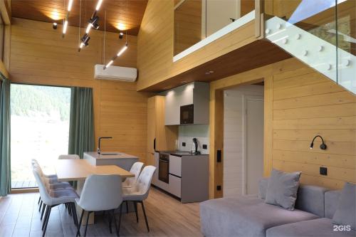 С одной стороны бескрайние горные массивы, с другой простирается изумрудная река Катунь, а между ними расположена современная локация с технологичными архитектурными решениями - Альпинс residence.