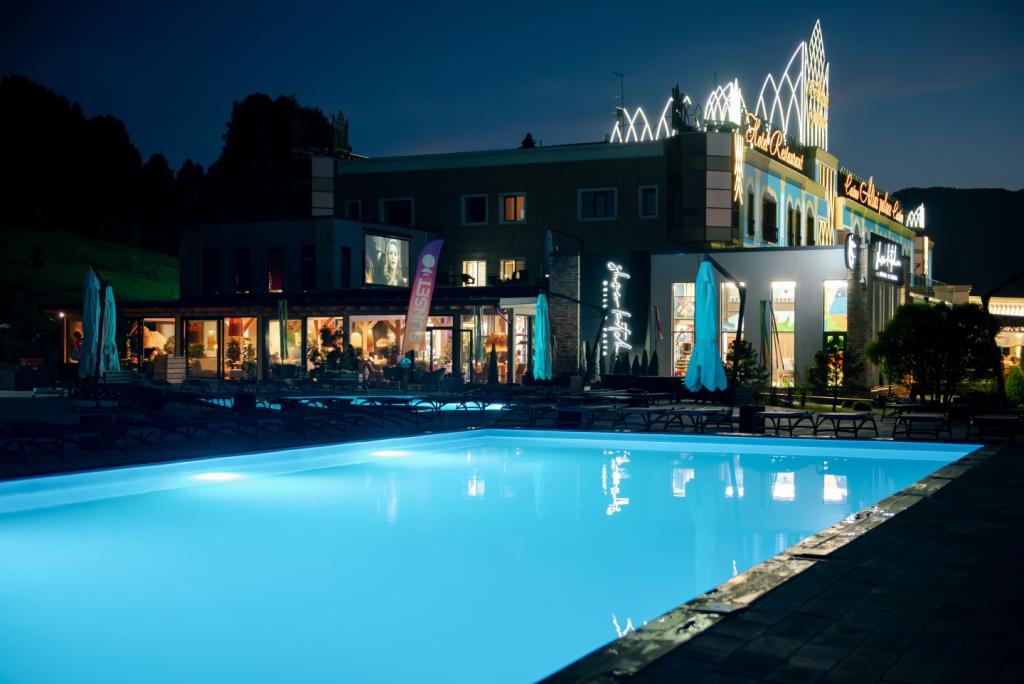 В здании отеля представлена вся необходимая инфраструктура для полноценного отдыха: круглосуточный ресторан «Ласточки» с обширным меню, сочными стейками, свежими морепродуктами и сырами собственного производства. Для расслабления и оздоровления гостей работает СПА "Релакс" с термальным комплексом и тренажёрным залом. Юных гостей ждёт большой детский клуб с профессиональными аниматорами и ежедневной программой. Любителям активного досуга доступны кинопоказы, бильярдный клуб, казино, а также вечеринки в караоке-холле, ресторане и концертном зале "Джокер". На территории — охраняемый открытый паркинг.