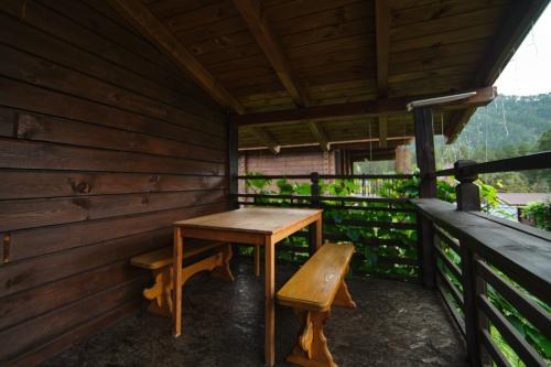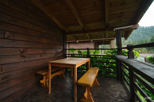 Апартаменты - 2 этаж "Семейный круглогодичный" Вместимость - 5 взрослых + 1 ребенок (Максимально 6 гостей). Полноценный отдых в Горном Алтае возможен в любое время года. Если добавить к уникальным природным богатствам края оптимальные условия проживания на втором этаже в полноценных апартаментах, можно не беспокоиться о комфорте всех членов семьи. Отдых на Алтае летом и зимой в апартаментах, подарит следующие достоинства: - полноценные спальные места для всей семьи; - персональный балкон с видом на природу и горы; - современная мебель в комнатах и на улице; - мини-кухня, обеденный стол и посуда; - отдельная ванная комната со всеми принадлежностями. Все окна в комнатах продублированы москитными сетками. Для детей есть каркасный бассейн с чистой водой под открытым небом, а также детская площадка. Для взрослых - баня и оборудованная мангальная зона. Не все базы отдыха Алтай могут предоставить настолько комфортные условия проживания, как летом, так и зимой. Апартаменты, сделанные из экологически чистой древесины, не только насыщают воздух в доме приятным ароматом, но и способствуют глубокому сну. В зимний период туристы могут рассчитывать на качественное отопление апартаментов.