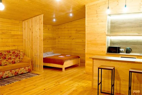 Отель выполнен из массива уникального алтайского кедра