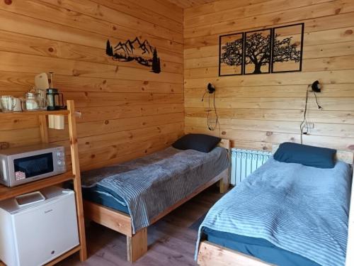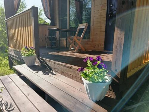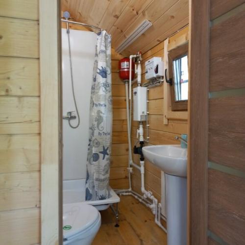 Платки площадью 20 кв. м, в кажд из них есть душ, санузел, большая двуспальная кровать (матрац с подогревом), столик, стулья, холодильник и стеллаж.