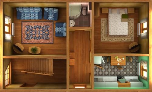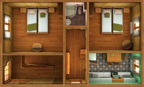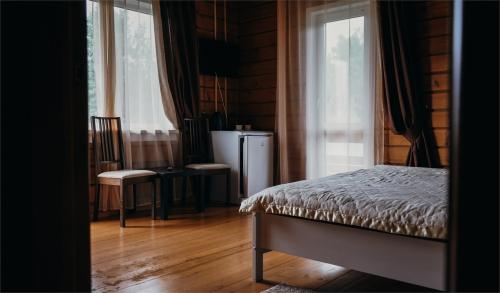 Корпус1, Корпус 2 представлены двумя двухэтажными коттеджами из бруса на 1 двухкомнатный и 14 однокомнатных номеров.