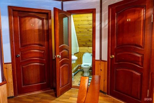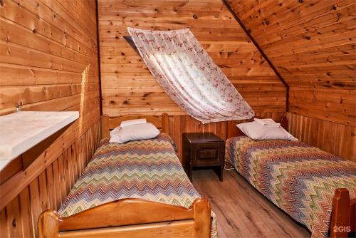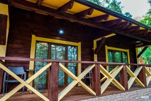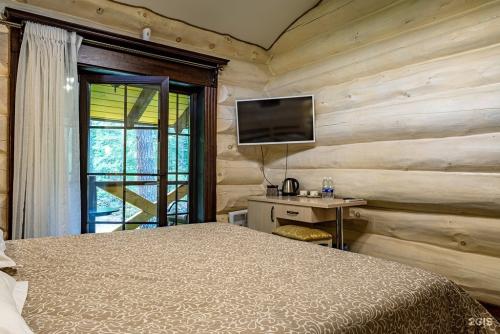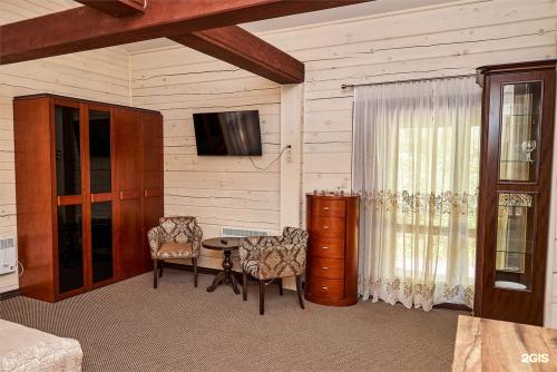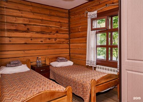 Проживание организовано в деревянных домах из кедрового бруса, что придает здешнему воздуху особый аромат и создает целебный микроклимат. Номера оснащены удобной мебелью, санузлом с душем и комплектом полотенец, в большинстве есть телевизор и холодильник. Для тех, кто предпочитает простоту, предусмотрены номера эконом-класса с удобствами на этаже. В коттеджах доступны кухонные зоны для самостоятельного приготовления пищи.