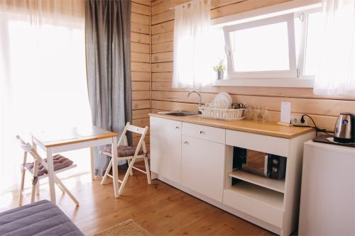 Все строения комплекса выполнены из местных сосны и кедра, благоустроены, каждая деталь интерьера продумана и подобрана с душой для ощущения уюта вдали от дома.
