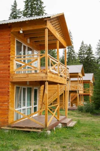 На территории работает кафе, где гости могут самостоятельно приготовить еду, обустроена мангальная зона на берегу реки. К услугам отдыхающих настоящая баня на дровах, выстроенная из кедра - отличный вариант расслабиться после активного дня. Также есть автопарковка, а для юных гостей организована игровая площадка.