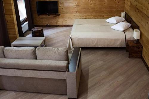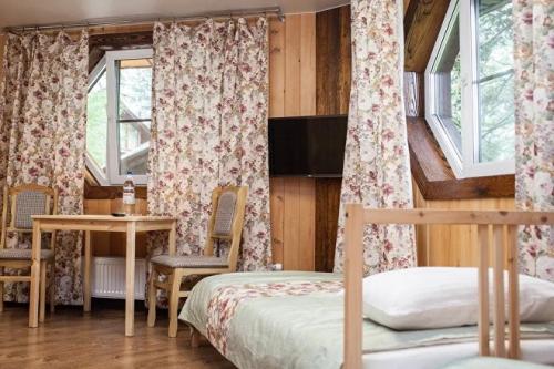 4 корпуса из кедра оригинальной архитектуры. Территория занимает 0,8 га. 17 номеров с одноместным, двухместным и семейным проживанием. Вместимость до 62 человек. Возможно проведение корпоративных мероприятий, совещаний, обучения, тренингов и т.д.