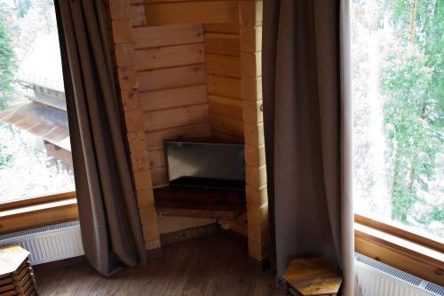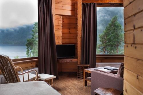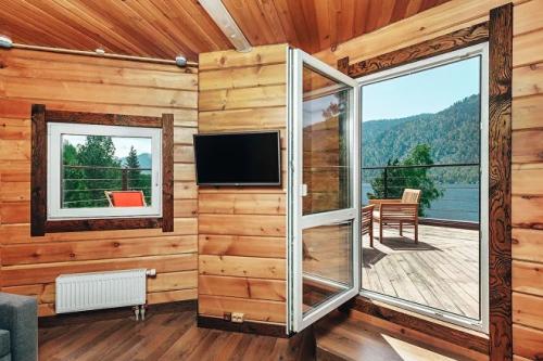 Три корпуса-башни и главный корпус с кафе расположились в уединенном месте на берегу озера. Все строения на территории выполнены из натурального кедра. Отель спроектирован так, что все окна имеют завораживающий вид на Телецкое озеро.