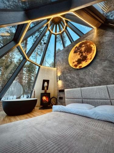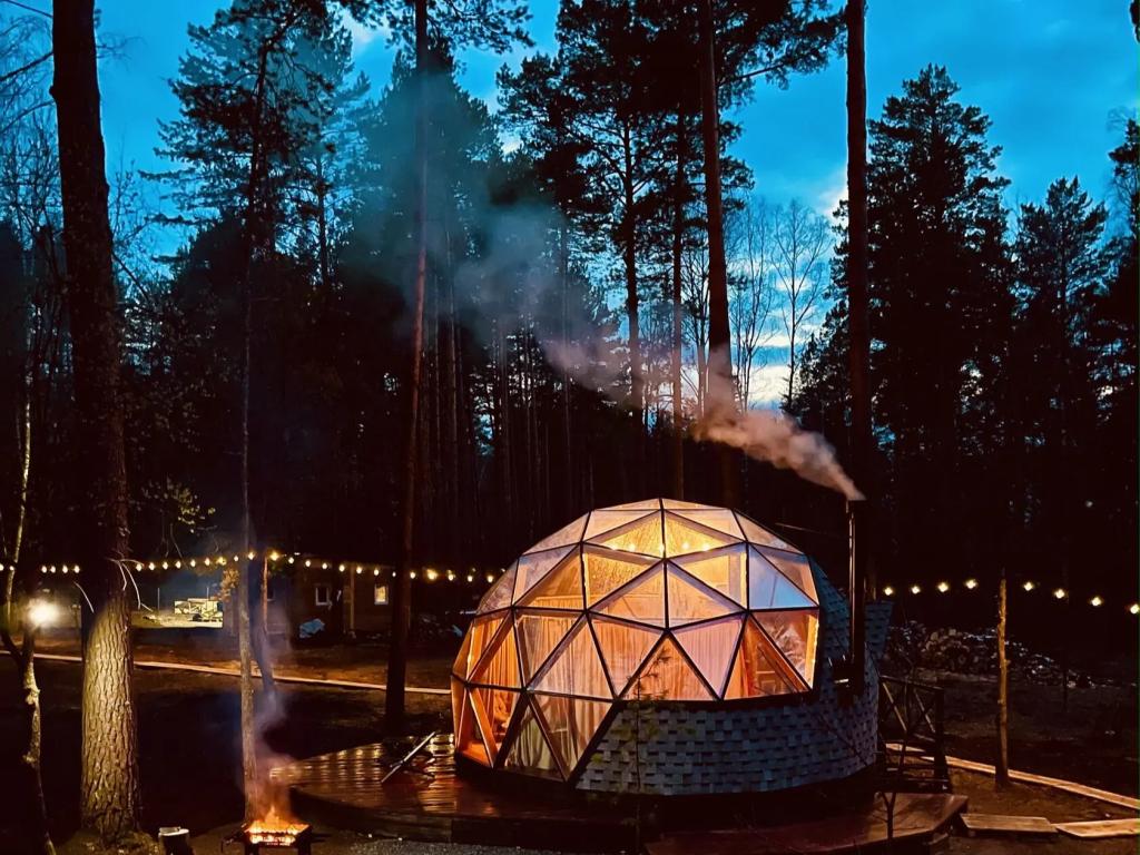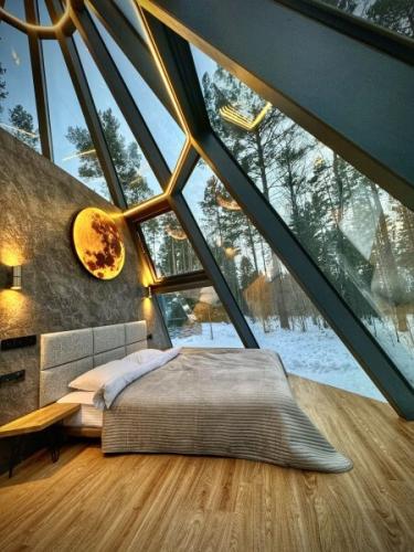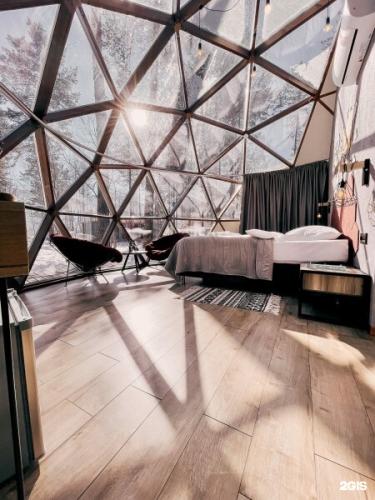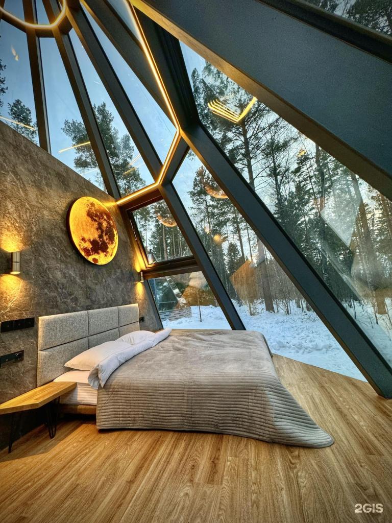 Главная особенность Geometrika Lounge Hotel — его оригинальная архитектура. Для гостей подготовлены 15 дизайнерских домов, каждый из которых выполнен в форме геометрической фигуры: Sfera, Kub, Konus, Prisma, Georoom. Это не просто проживание, а настоящий опыт современного глэмпинга — уют в окружении алтайской природы. Панорамные окна наполняют домики светом и открывают виды на лес и горы, а стильные интерьеры создают атмосферу релакса и уюта.