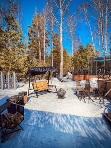У каждого дома предусмотрена собственная мангальная зона с возможностью аренды казана, печи или тандыра. Территория дополнена качелями, беседками и ухоженным садом — идеальное место для отдыха на свежем воздухе. Для гостей организуют экскурсии по местным достопримечательностям, предлагаются активные развлечения — катание на лыжах и велосипедах, рафтинг, конные прогулки, зимний каток.