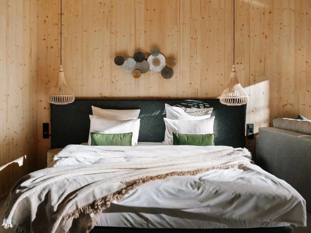 Гостей парка ждут комфортабельные, современные домики, оснащенные всем необходимым для жизни и отдыха. Санузлы с душевыми кабинками, удобная мебель, чайник, места для хранения вещей. Домики делятся на несколько категорий — от бюджетных одноэтажных вариантов до более продвинутых гостевых апартаментов. В некоторых номерах есть собственная мини-кухня для самостоятельного приготовления еды. Также в ряде домов терраса с подогреваемой купелью.