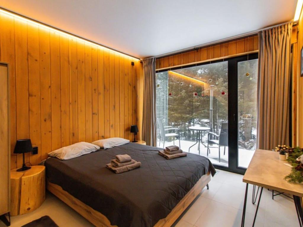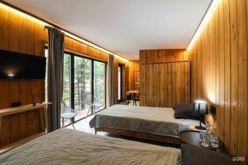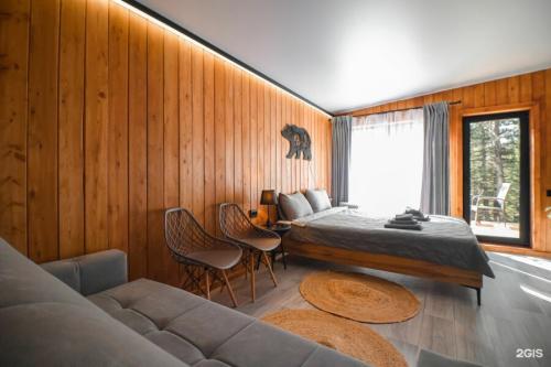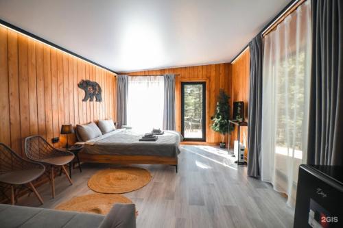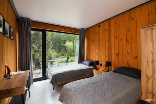 База отдыха работает круглый год и оснащена всем необходимым для комфортного проживания в любое время. В отеле предусмотрено газовое отопление, тёплые полы и бесперебойное электроснабжение, благодаря чему в номерах всегда поддерживается стабильная температура. Панорамные окна открывают вид на лес и горы, создавая ощущение уединения и близости к природе.