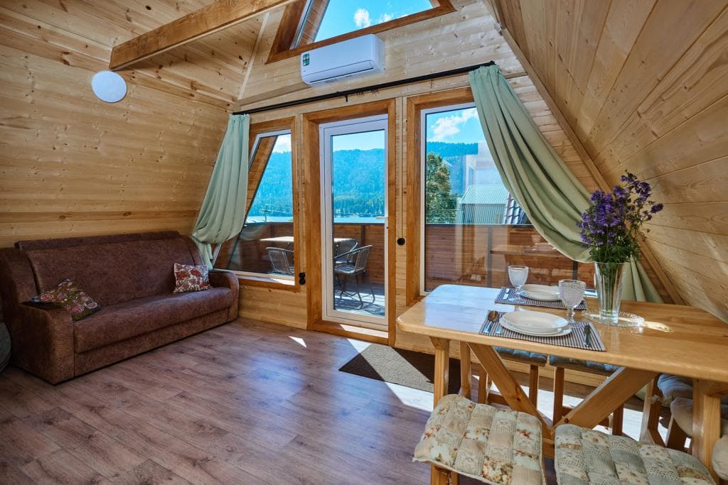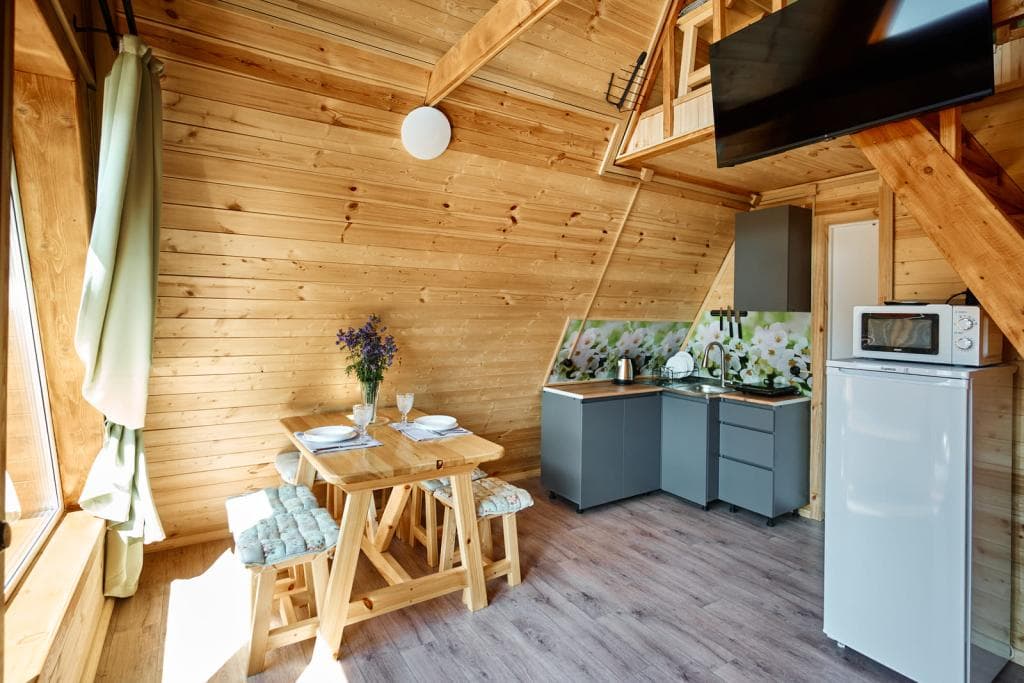 В гостиных есть все, что необходимо для приготовления и приемы пищи: холодильник, микроволновая печь, чайник, плитка, посуда . Вы можете выбрать любой из семи доступных номеров или отдельный домик на семью или компанию.