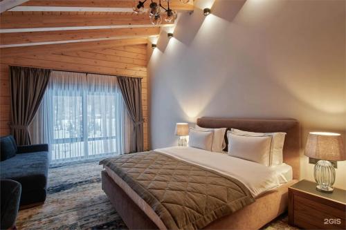 Grand Chalet Altay 5* расположился на площади 8,5 Га на левом берегу реки Катунь, всего 10 км от горнолыжного курорта Манжерок на территории природного комплекса «Бирюзовая Катунь».