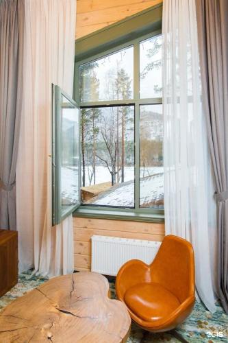 Проживание в Grand Chalet Altay предусмотрено в комфортабельных коттеджах в стиле современных шале из массива алтайского кедра и сосны или стильных номерах отеля. Продуманный до мельчайших деталей авторский интерьер подарит незабываемые впечатления изысканного отдыха, ощущение комфорта и заботы, а панорамные окна и террасы откроют уникальные виды на Катунь и живописные отвесные скалы.