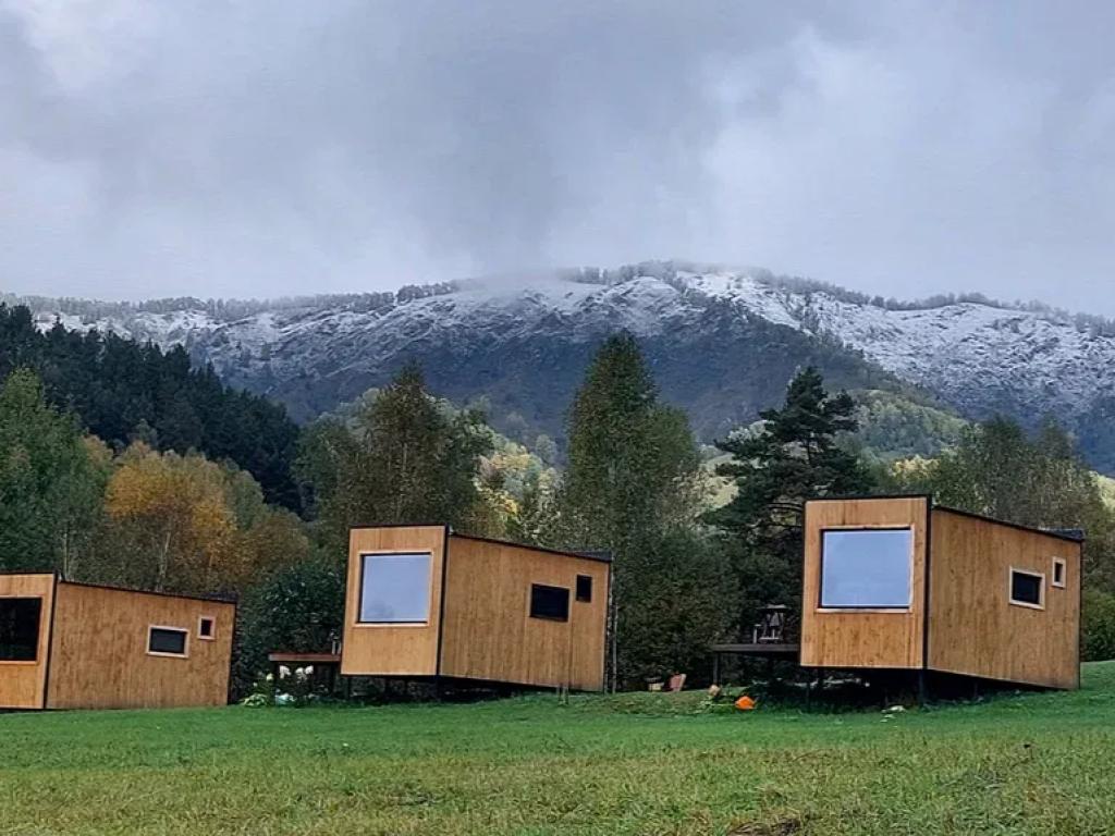 Размещение в комфортных тёплых домиках, со всеми удобствами, рассчитан на семью из 3-х человек!