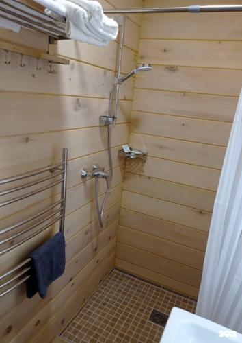 Дом номер четыре "Щедрость" отапливается электрическими тёплыми полами. В этом доме есть кухня с необходимой посудой, холодильником, чайником, индукционной плитой и мойкой. Спальные места: двуспальная кровать 140х200 см с удобным матрасом и двуспальный раскладной диванчик 140х200 см. Также есть стол, стулья, комод. В ванной водонагреватель на 100 литров, унитаз, умывальник, душ, полотенцесушитель, фен, зеркало и гигиенические принадлежности-шампунь, гель для душа, мыло, зубные щётки с пастой, шапочки для душа, полотенца для тела, рук и ног, тапочки.