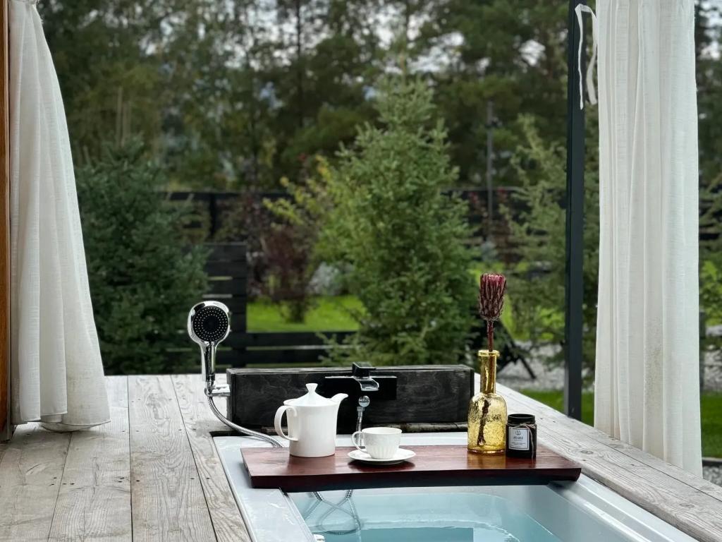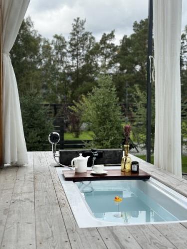 Дом с камином и ванной на террасе для 2 взрослых