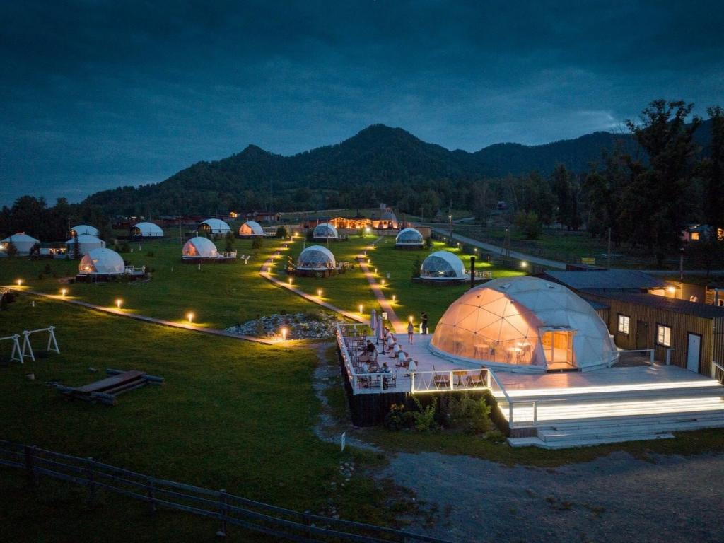 В самом сердце Горного Алтая, в селе Анос, расположился уникальный купольный эко-отель «Вдох». Это современный круглогодичный комплекс, где архитектурные формы перекликаются с традициями, а продуманный сервис соединяется с атмосферой полной гармонии с природой. Просторная территория, уединенное расположение домиков и панорамные виды на горные хребты создают идеальные условия для перезагрузки и отдыха в стиле эко.