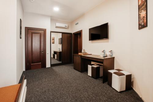Гостям предлагается широкий выбор гостиничных и оздоровительных услуг, а также комфортабельные условия проживания - от категории Стандарт до категории Люкс. Номера отеля оснащены всем необходимым: удобной мебелью, позволяющей с комфортом разместить личные вещи и уютно провести время, телевизором и кондиционером. Каждому Гостю - комплект полотенец, халат, тапочки и мыльные принадлежности, бутилированная вода. В номерах повышенной комфортности - холодильник, чайник, фен. Буфетная зона с чаем, кофе и сладостями расположена на этаже гостиничного комплекса, где гости круглосуточно могут воспользоваться чайником и кулером с холодной водой. Завтраки за дополнительную плату доставляются в номер постояльцам с 7-11 утра.