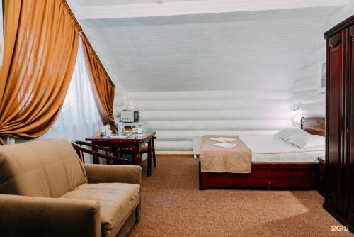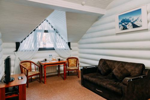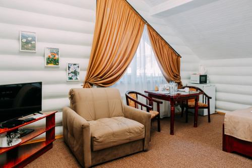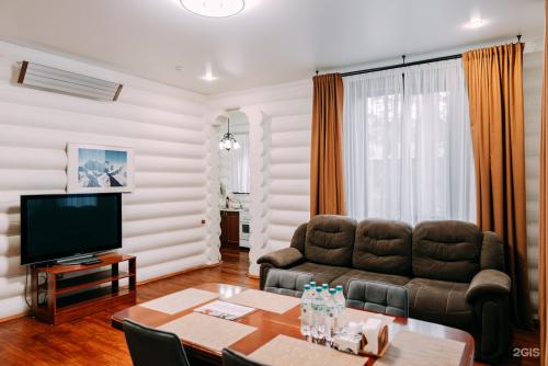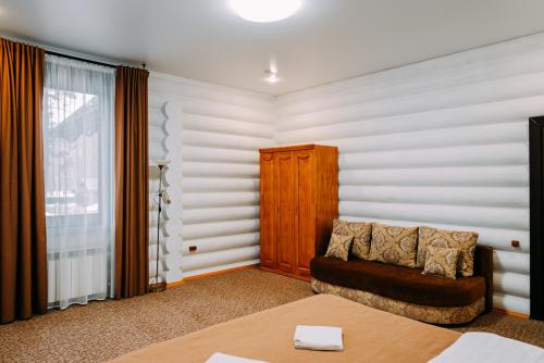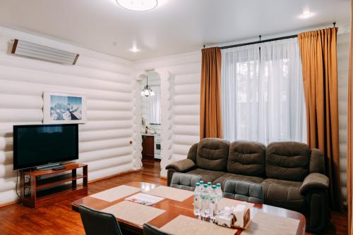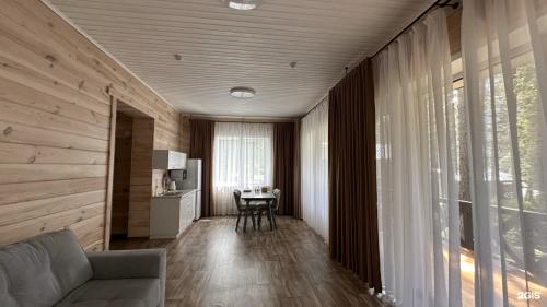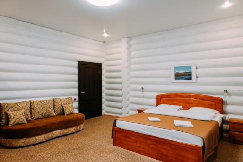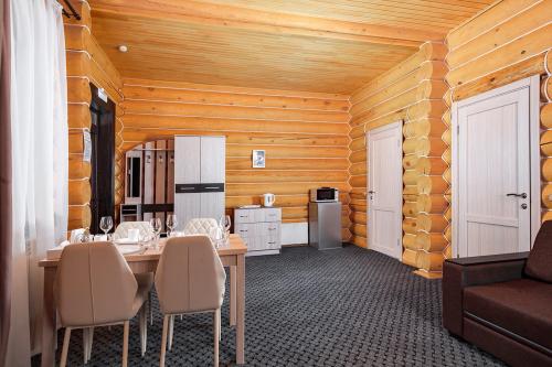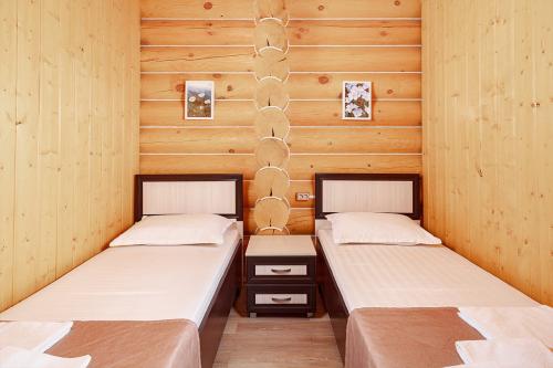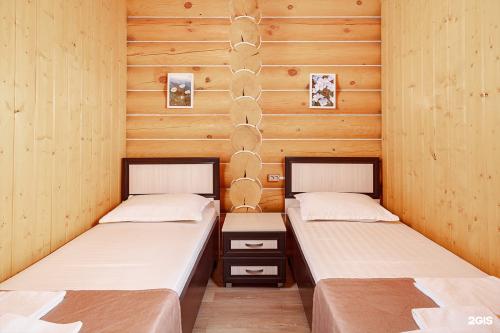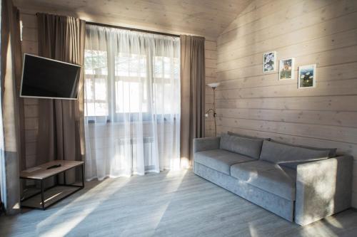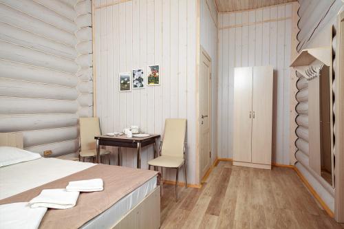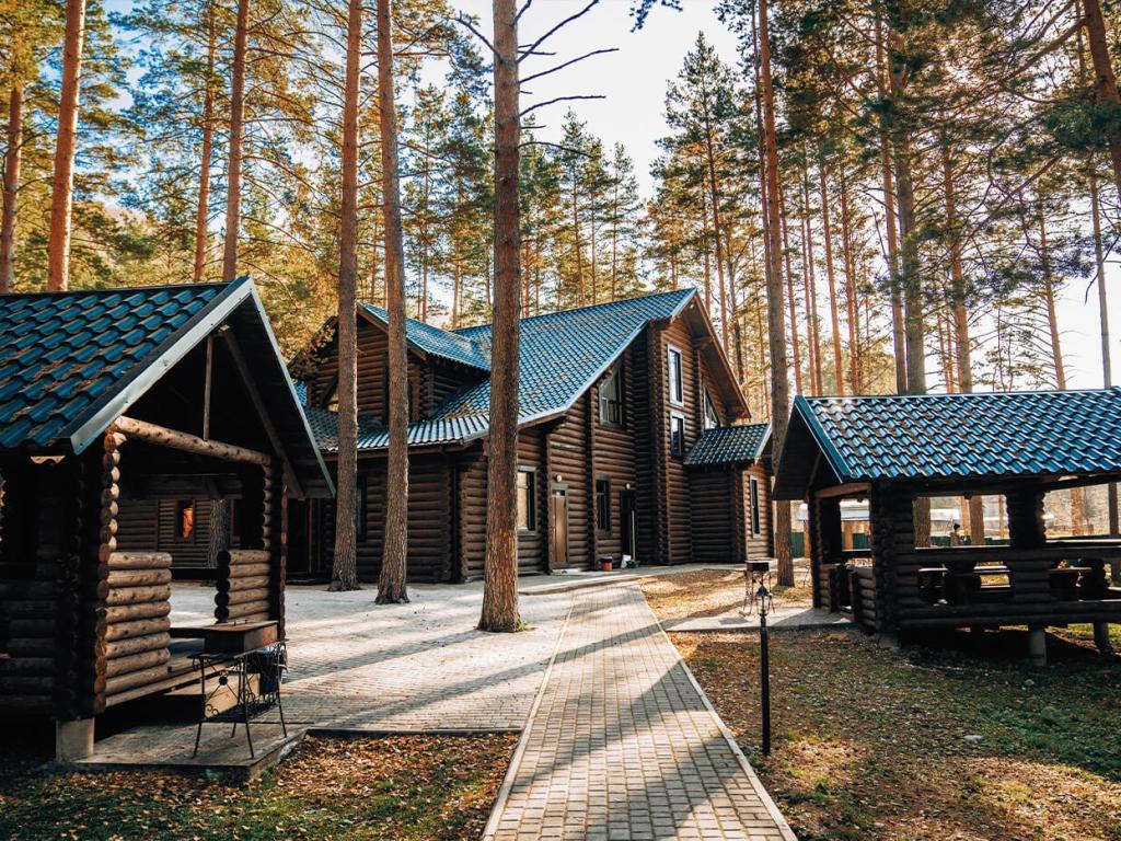 Турбаза располагает просторной зеленой территорией и собственной благоустроенной пляжной зоной. Для гостей доступны как двухэтажные деревянные корпуса, так и отдельные дома — всего 32 номера, рассчитанных почти на сотню отдыхающих.
