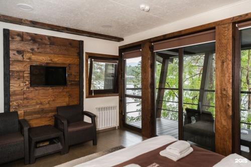 Все дома выполнены в европейском стиле. В каждом имеется все необходимое для комфортного отдыха: удобные двуспальные кровати, телевизоры, кондиционеры, ванная комната с душевой. При необходимости дома отапливаются, есть пол с подогревом. Мы также предоставляем ванные принадлежности, полотенца, тапочки, фен, чайник, микроволновую печь, комплект посуды. В каждом доме есть сейф.