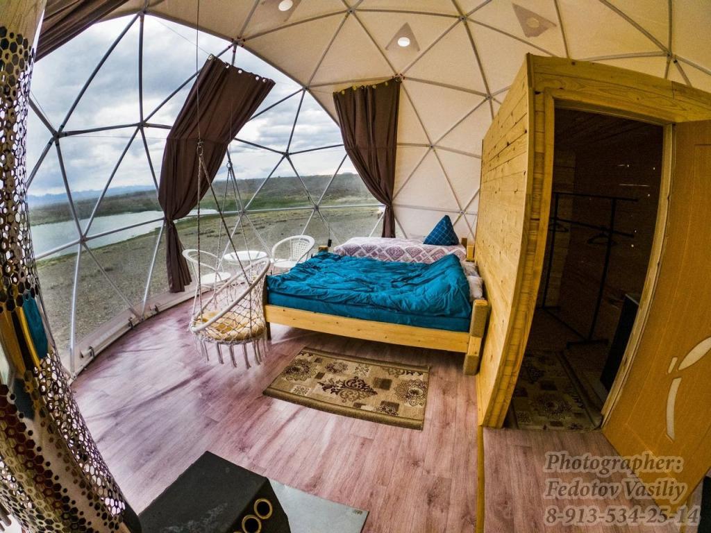 Свой Алтай – это уютный глэмпинг в Кош-Агаче, в 70 км от границы с Монголией, который дает возможность комфортного отдыха на природе вдали от цивилизации. Здесь нет светового шума, что открывает возможность наблюдать за потрясающим звездным небом. База отдыха Свой Алтай предоставляет для проживания футуристичные сферы с панорамным остеклением и стильные эко-дома с удобствами внутри. На территории глэмпинга расположена общая кухня, баня и прокат сап-бордов, на которых можно поплавать по живописному озеру, которое находится в нескольких десятках метров от номеров. Кроме того, хозяева организуют захватывающие туры по Горному Алтаю, которые позволяют вам по-настоящему оценить красоту этих мест.