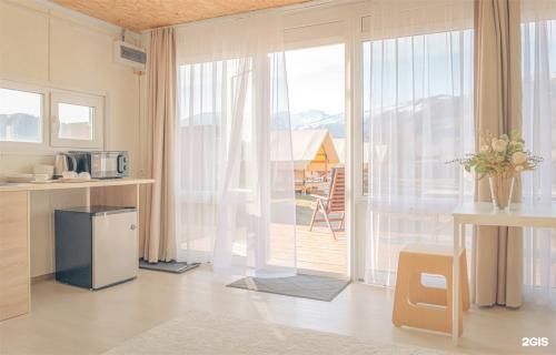 Гостям предлагаются различные варианты размещения. Номерной фонд включает номера категорий люкс и полулюкс — одно- и двухкомнатные, с панорамными окнами, террасами или балконами, оборудованными мебелью для отдыха. Также доступны стандартные номера и хостелы на шесть или восемь мест. На нашем сайте можно узнать контактную информацию, чтобы забронировать отдых на турбазе или уточнить информацию об условиях проживания.