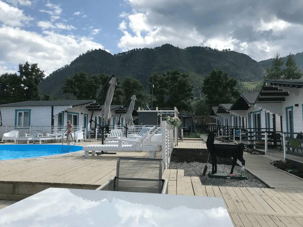 Одним из ключевых преимуществ усадьбы является расположение. В пешей доступности находятся магазины, сувенирные лавки и социальная инфраструктура села. До берега реки Катунь — около 10 минут пешком. Рядом расположены популярные достопримечательности: Остров Патмос и Храм Иоанна Богослова.
