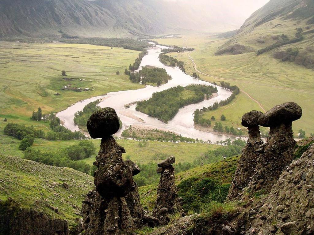 Здесь есть «каменные грибы» — причудливо выветренные скалы, небольшой скальный выступ необычной формы, который называют Седло Сартакпая — мифологического богатыря и, конечно, нельзя обойти вниманием Пазырыкские курганы, скифские гробницы железного века.