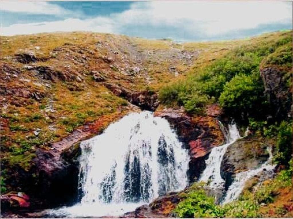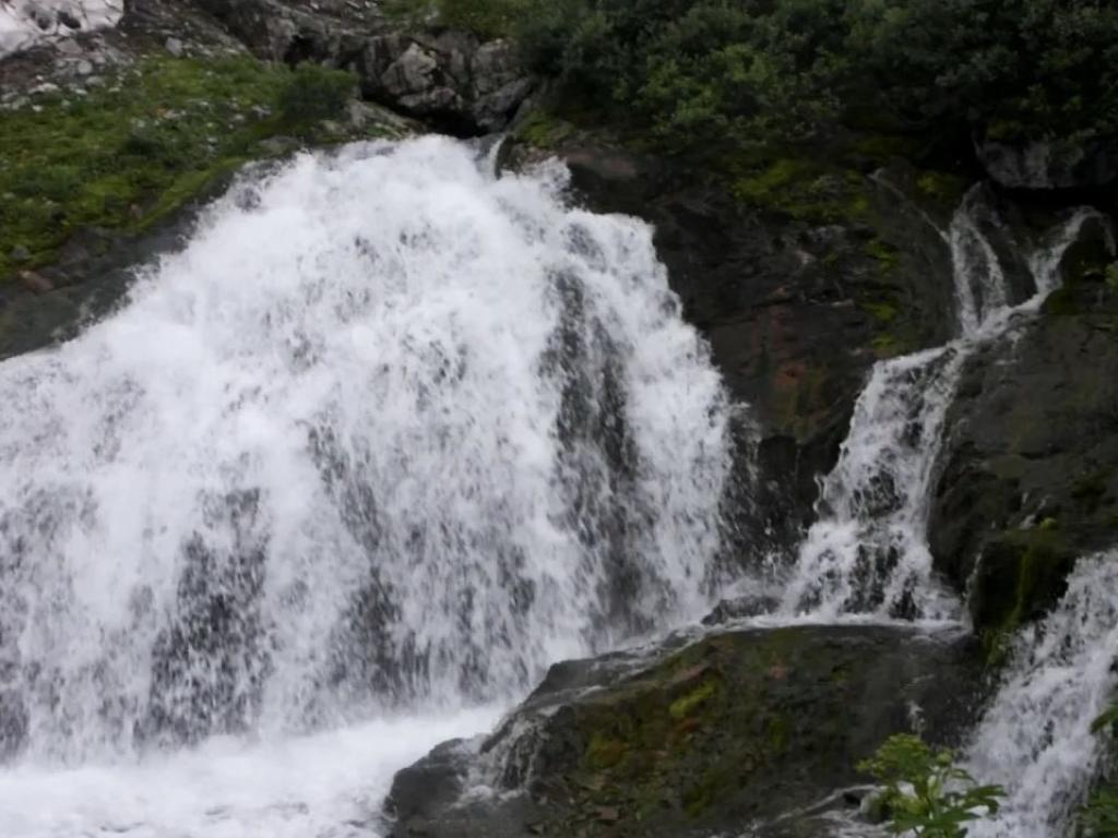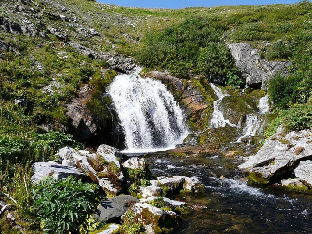На Теректинском хребте, в истоке реки Большой Яломан, находится этот красивый источник. Это не просто струйка полезной воды, а целый водопад, одновременно и самый мощный, и самый высокогорный источник Алтая — он расположен на высоте 2500 метров над уровнем моря. Летом, в самый полноводный период, когда тают ледники, сила источника настолько велика, что он напоминает метровый в высоту гейзер, вырывающийся из скал.