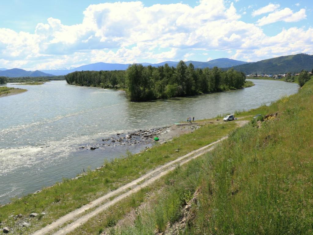 Место слияния Коксы и Катуни. В этом месте синяя Кокса сливается с бирюзовой Катунью. Памятник природы Усть-Коксинского района.