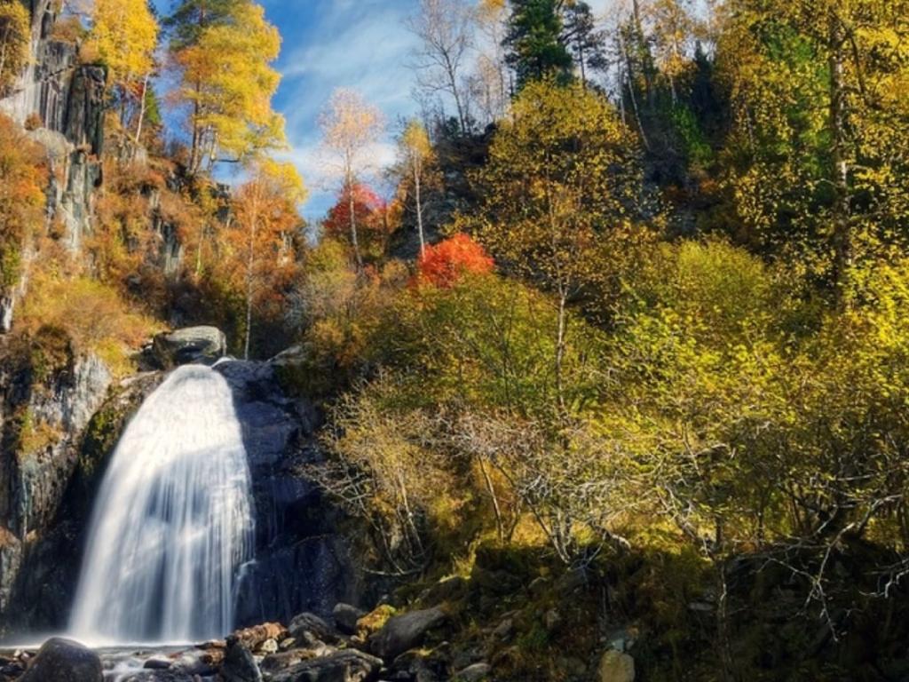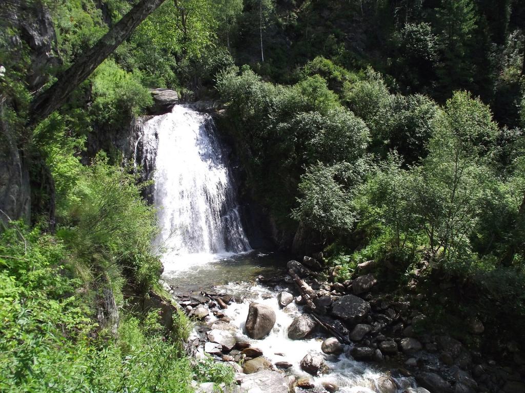 У подножия хребта Корбу речка с тем же названием образовывает небольшой водопад. Высота его около 12 метров. Расположен водопад на территории Алтайского биосферного заповедника, как и весь правый берег Телецкого озера.
