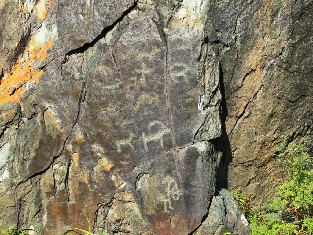 Куюсский грот — это небольшая выемка в скале неподалеку от села Куюс. В этом месте в эпоху от каменного до раннего железного века древние люди оставили более двух сотен наскальных рисунков. Основное их число было нанесено в эпоху бронзы. Рисунки можно отыскать не только внутри скальной расщелины, но и снаружи, и на камнях неподалеку. Здесь изображены разные животные, настоящие и выдуманные, и можно увидеть, как менялся стиль художников древности, как по-разному изображали они быков, лосей и маралов. Можно найти и рисунки людей, одно явно изображает шамана с бубном.