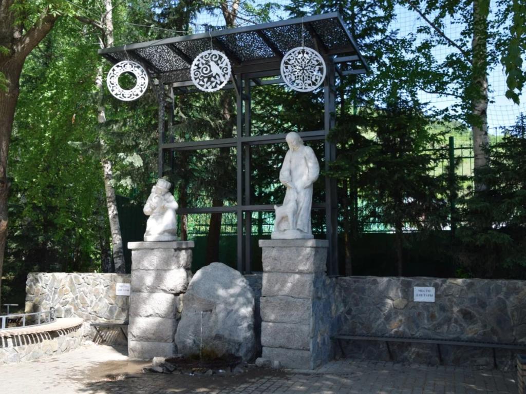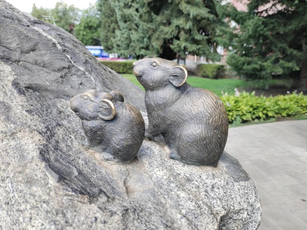 Родник у здания городской администрации украшает резервуар для воды - камень излив в форме кувшина. На роднике есть скульптуры - краснокнижные животные Республики Алтай, мыши-пищухи. Из-за способности запасать сено их еще называют сеноставками. Их можно встретить в Чуйской степи.