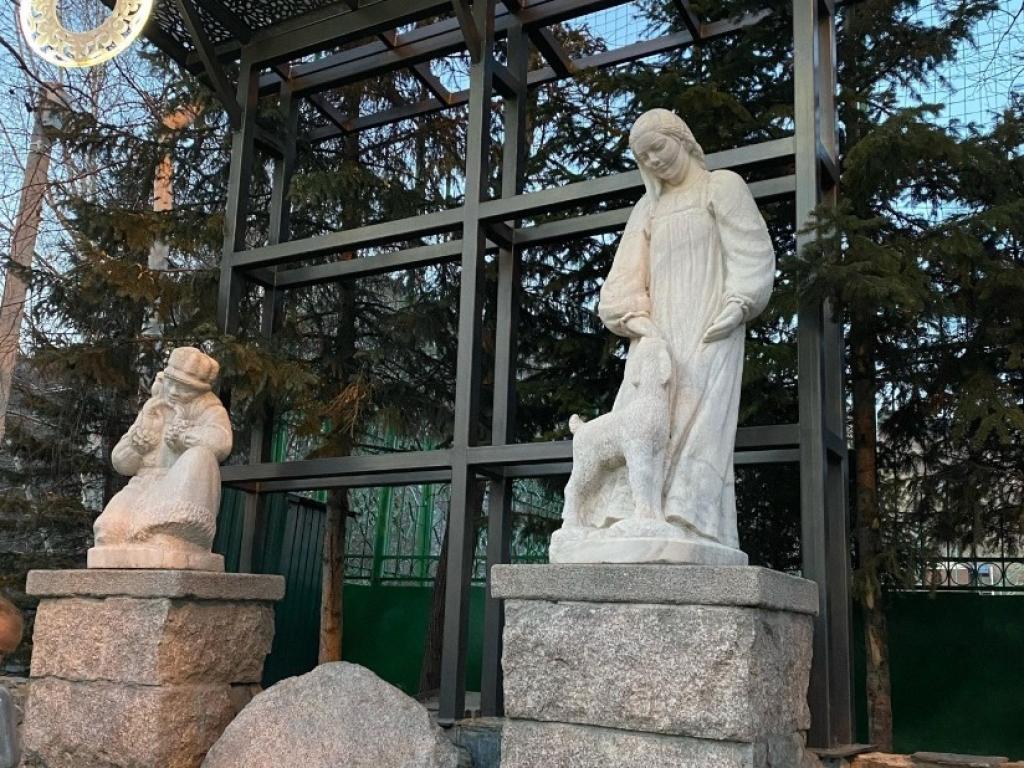 Скульптурную группу создали супруги Павел Богомолов и Галина Махринская. Это нежный и трогательный символ единения двух народов в Республике, знак любви и дружбы. Обращение к тому, что так важно для души и сердца — наши первые сказки, под которые мы засыпали, каждому известные истории, словно друзья детства.