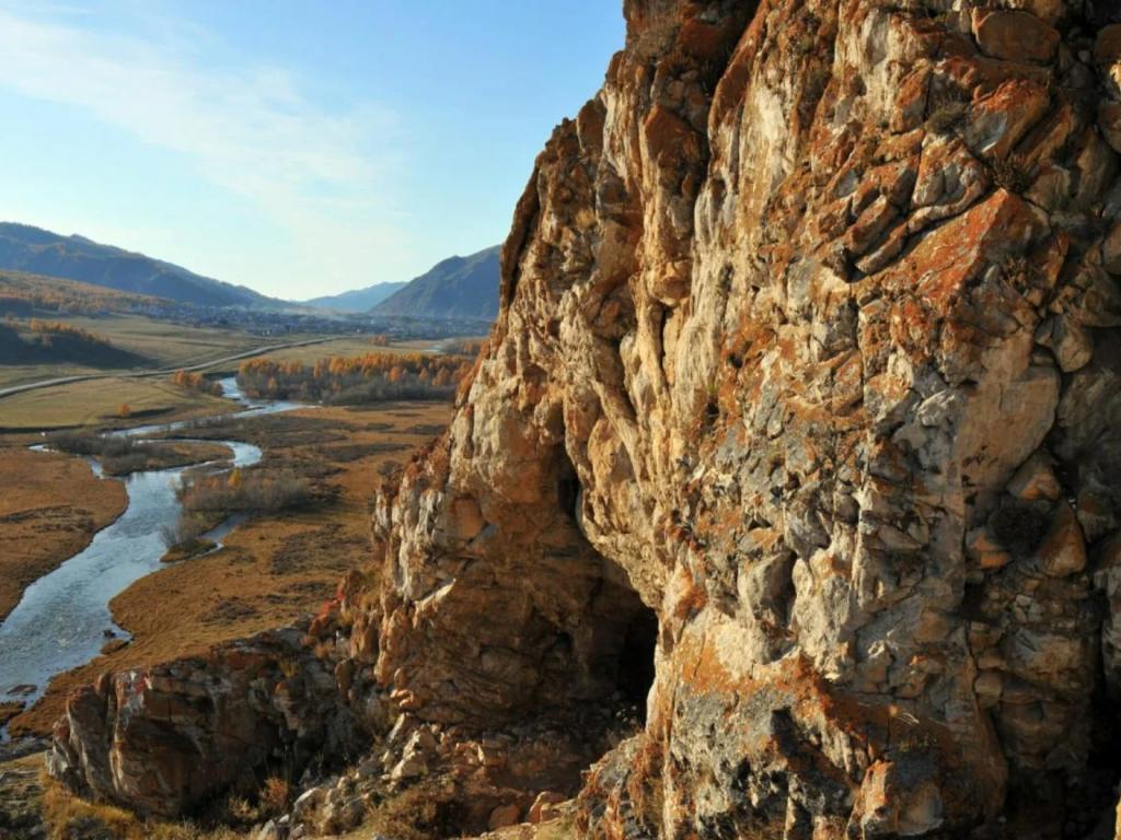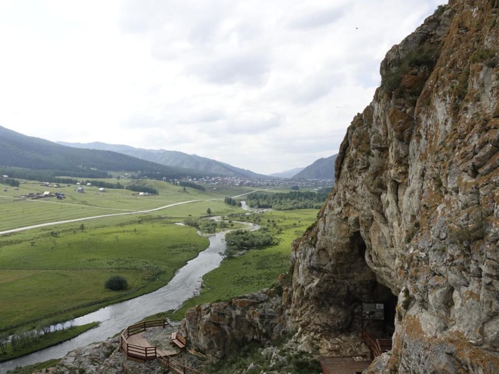Расположена в 3,5 км от села Усть-Кан на горе Белый камень, на правом берегу реки Чарыш. Длина пещеры - 17 м, высота - 12 м Своды образованы мраморными белыми известняками. В пещере найдена стоянка древнего человека Относится к охраняемым памятникам историко-культурного наследия.