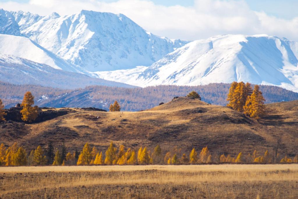 Этот тур составлен так, чтобы увидеть всю роскошь золотого цвета лиственниц на склонах Южно-Чуйского хребта и застать начало зимы в высокогорье.