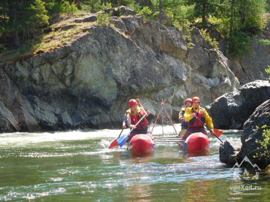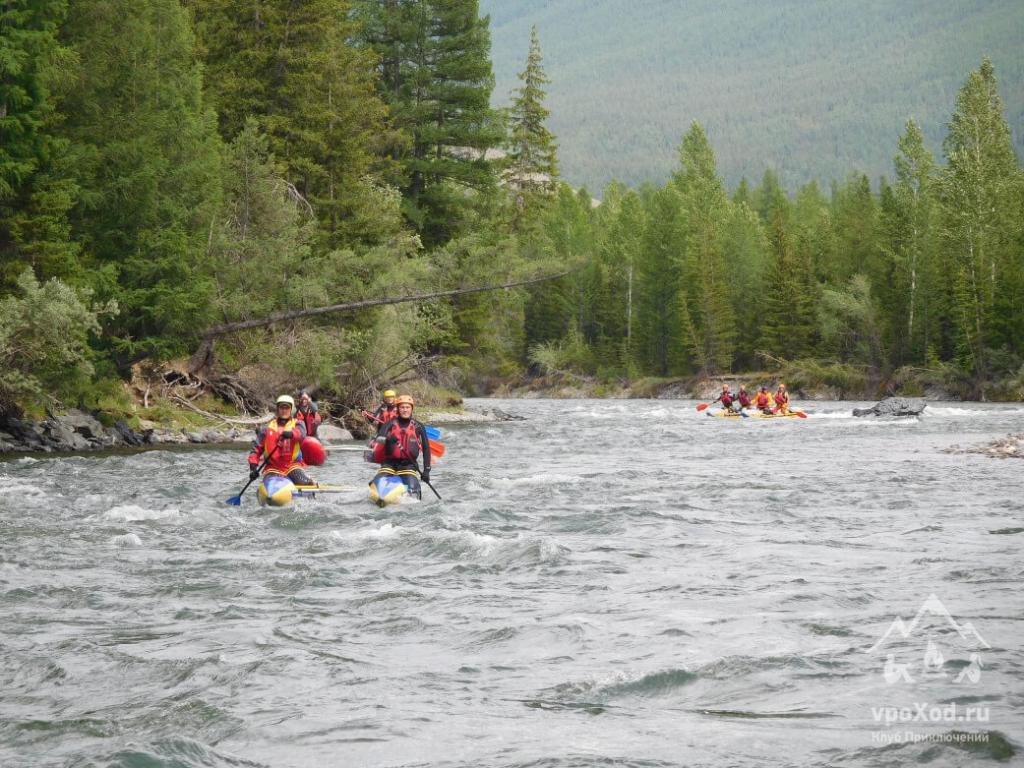 3 день: Далее следует рафтинг по Чулышману. Подготовка к сплаву: инструктаж по технике безопасности на воде; обучение пользованию водным снаряжением; технике управле-ния судном. Сплав начинается со спокойного участка, вы преодолеете небольшие шиверы. Примерно через 2-3 часа рафтинга Вас ожидают пороги «Туданского каскада» (5 к.с.). Разведка порогов, активный отдых, рыбалка. Ночевка.