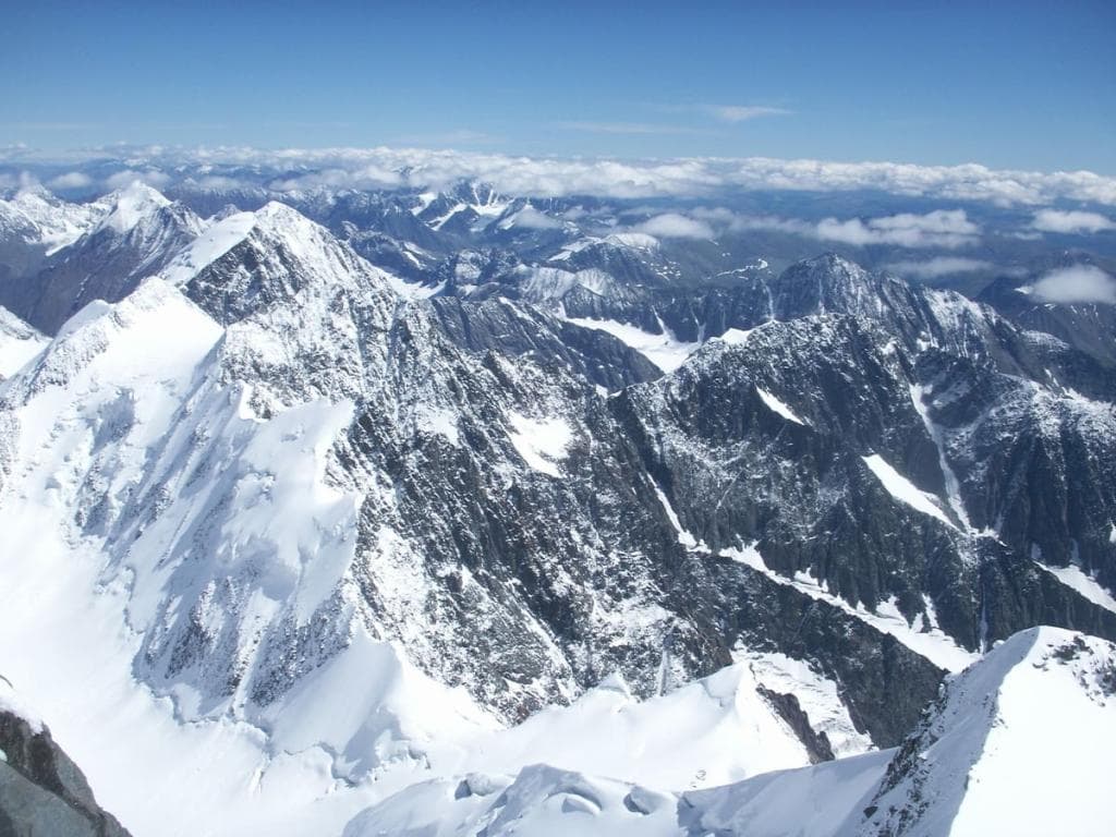 Траверс через вершину Делоне по снежно-ледовому гребню с участками скал на в. Белуха Восточная (4 509 м) Спуск по
