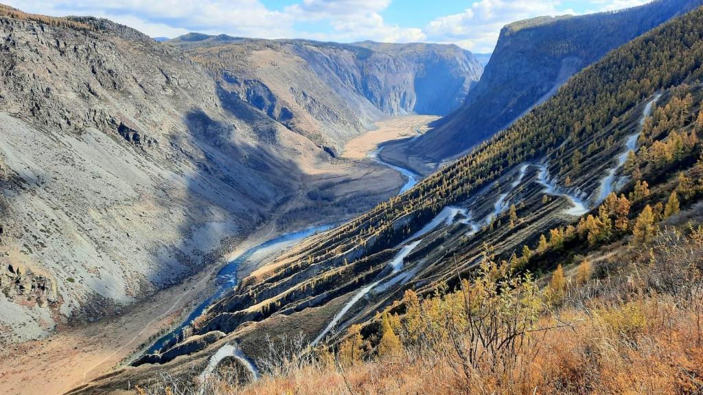 Осенний фото-тур «Золото Алтая». Маршрут: Горно-Алтайск - Чуйский тракт - Гейзерное озеро - Алтайский Марс - Мажойский каньон - Уларские водопады - перевал Кату-Ярык. Осенние краски, фотоохота. Размещение в отелях, питание, подходит для детей от 6 лет.